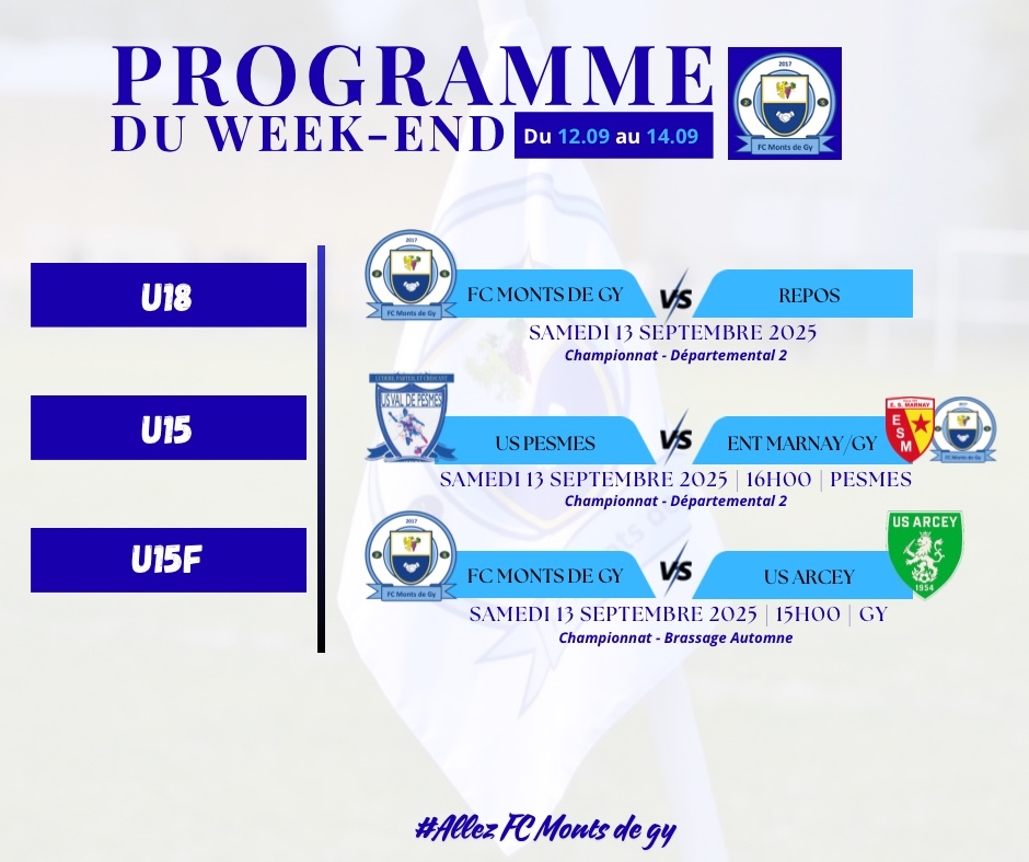 Γ noter la reprise de notre nouvelle Γ©quipe πππ ππΜπ¦π’π§π’π§π, qui recevra lβΓ©quipe dβArcey.